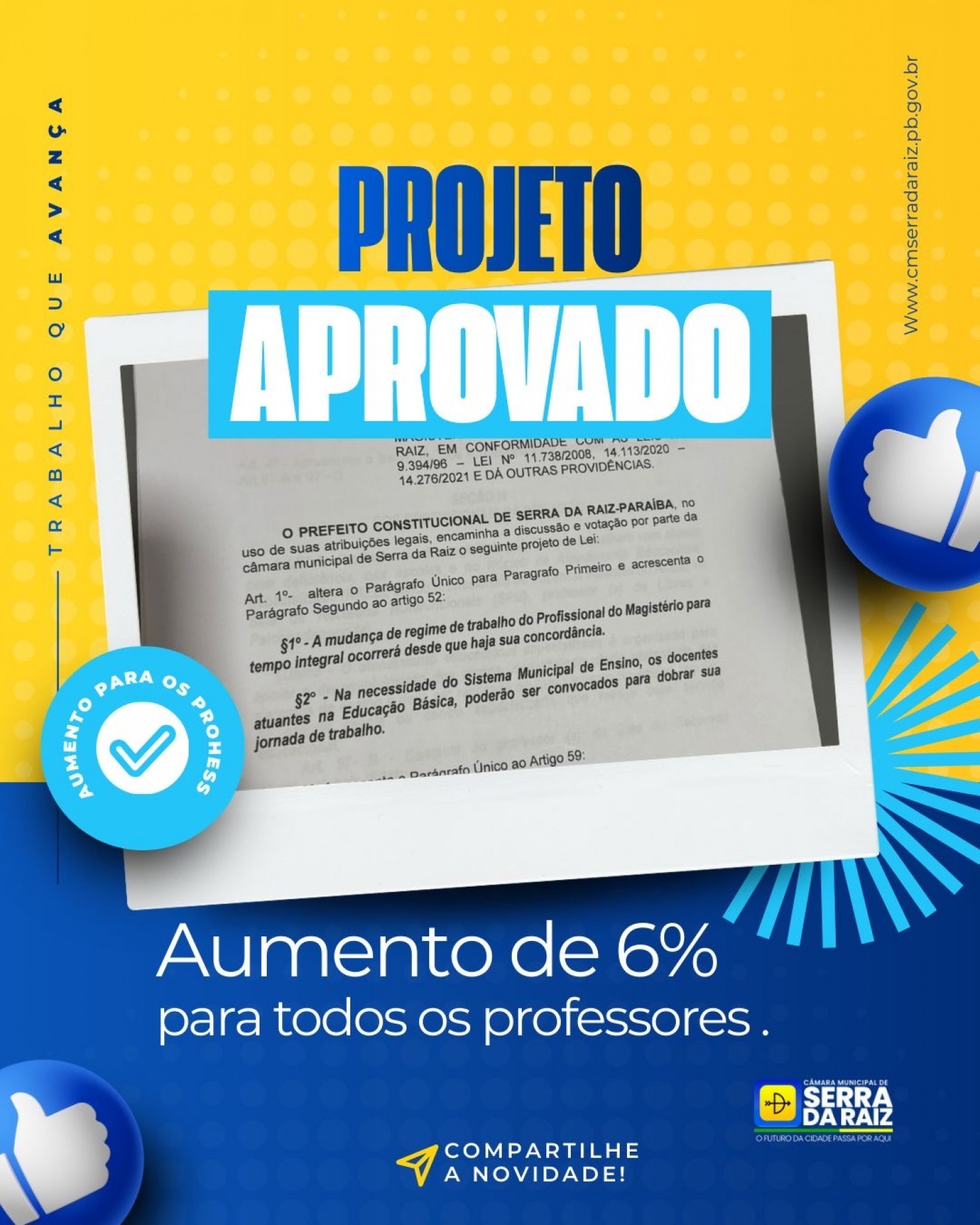 Os vereadores comemoraram e enfatizaram a importância dessas mudanças para o avanço da educação no município que recentemente recebeu o Selo Ouro, destacando que valorizar os professores é considerar a dedicação de cada um. O projeto aprovado ainda garante gratificação de 10% para cada aluno especial que o professor tiver em sala de aula e gratificação para o custo de ida da sede do município até a escola que lecionará, variando de 5 a 8%.